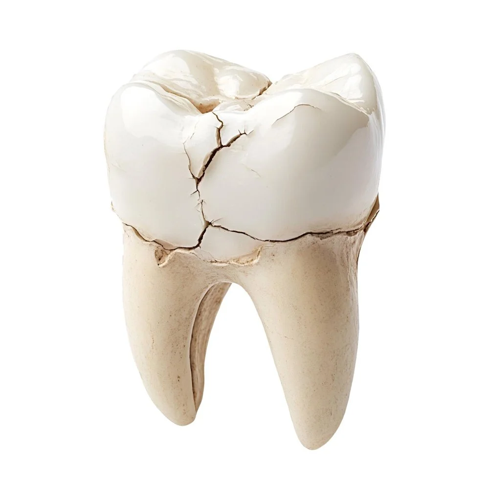 Трещина зуба — это повреждение эмали или дентина, которое может быть незаметным внешне, но вызывать боль при накусывании или чувствительность к холоду. Иногда трещина едва видна, но если её не лечить, она может углубиться и привести к сколу зуба или удалению зуба.