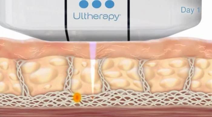 Ulthera System – аппарат c микро-сфокусированным ультразвуком, который проникает в разные слои кожи на глубину 1.5 мм, 3.0 мм и 4.5 мм, запуская синтез коллагена в дерме и способствуя лифтингу на уровне SMAS.