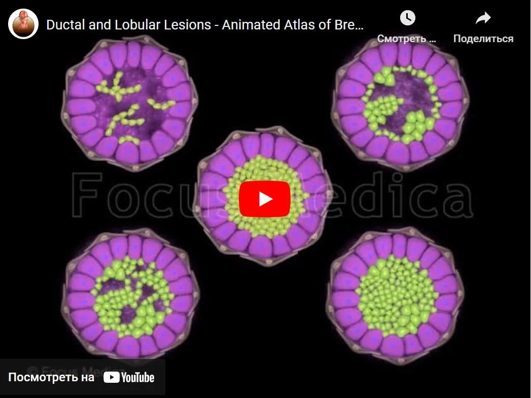 При обычной протоковой гиперплазии происходит разрастание клеток, выстилающих протоки молочной железы, но клетки выглядят очень близко к нормальным.