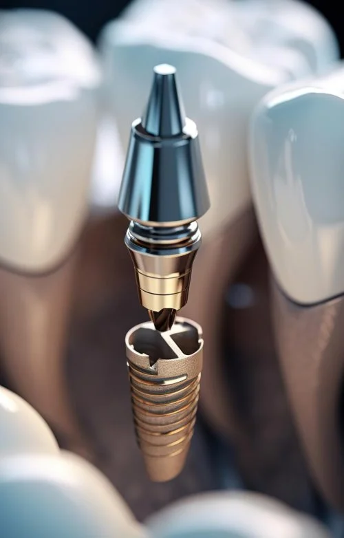 Большинство зубных имплантатов изготовлены из титана, материала с доказанной биосовместимостью, который очень хорошо интегрируется с костью (приживается к кости). Кость способна прирастать к поверхности титановых зубных имплантатов, делая их неподвижными. Показатели приживаемости составляют более 95%. Первоначально для изготовления компонентов имплантатов использовался чистый титан, но он оказался слишком мягким, поэтому производители имплантатов разработали сплав, способный обеспечить превосходную прочность, сохраняя при этом биосовместимые свойства.