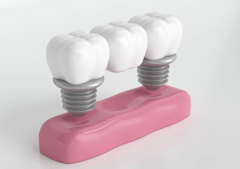 Мостовидные протезы на имплантатах. Если у вас отсутствует два или более соседних зубов, мостовидный протез на имплантатах может стать отличным решением. В этом варианте индивидуальный зубной мост удерживается на месте как минимум двумя зубными имплантатами, что делает его намного более надежным, чем традиционные зубные мосты, которые поддерживаются естественными зубами.