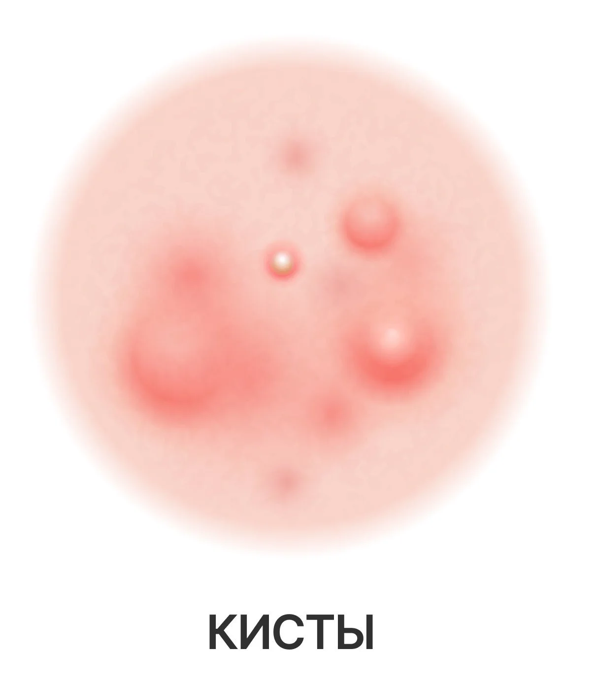 Размер: Кисты обычно крупнее (более 5 мм) папул, пустул и комедонов.