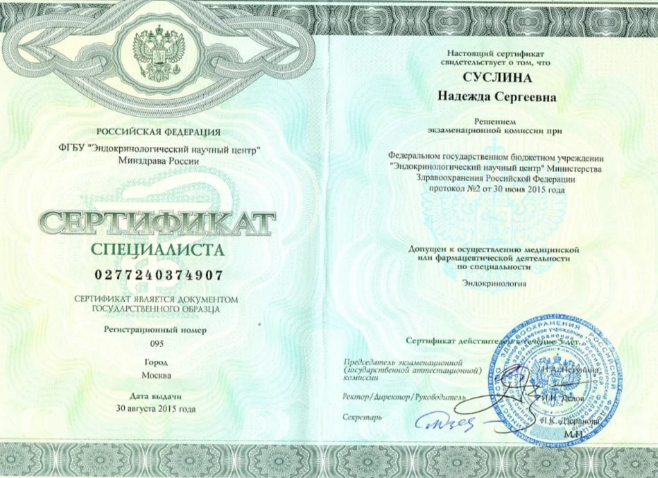 Сертификат эндокринолога